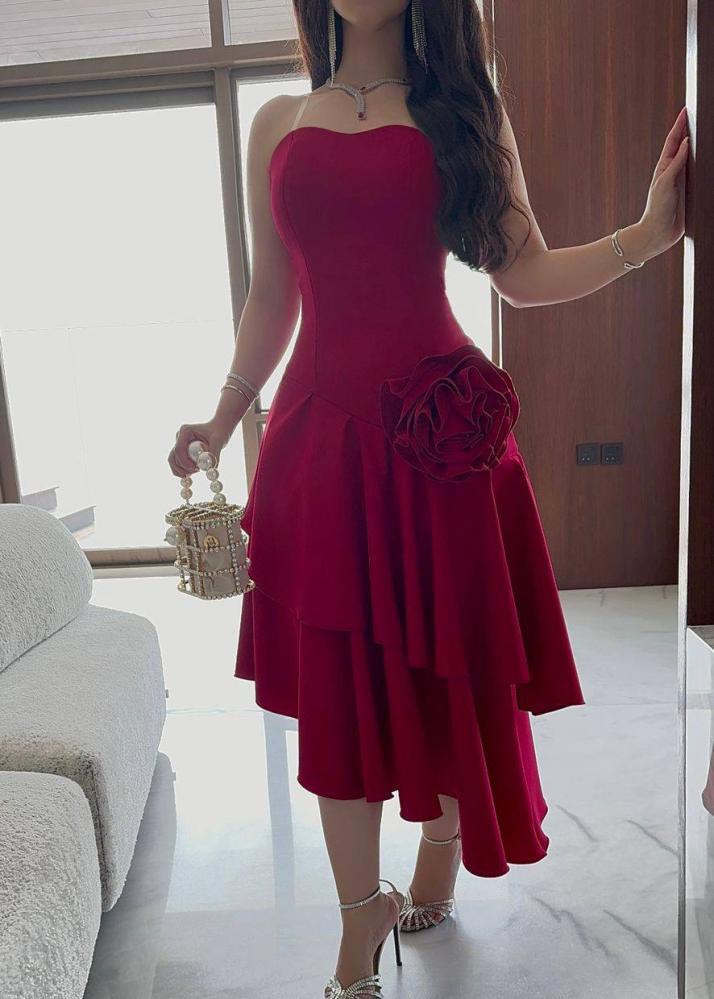 - انتي صاحبة القوام المثالي مع قصة خصر محددة ومزينة بوردة كبيرة.