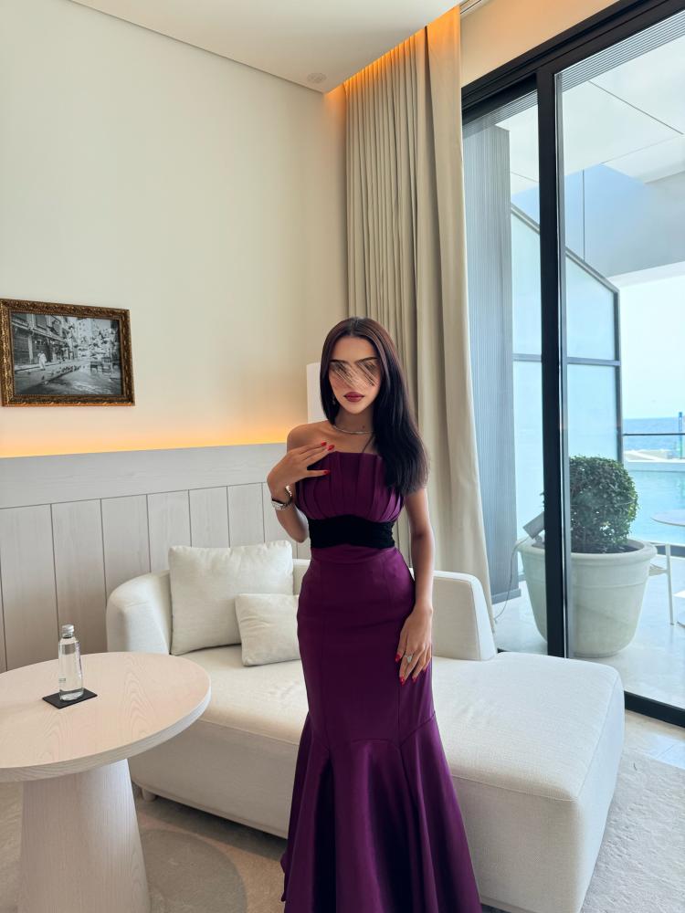 ثقتك بنفسك تحتاج إلى فستان سهرة طويل أرجواني بدون أكمام وأكتاف .. اطلبيه الآن من متجر برستيج.