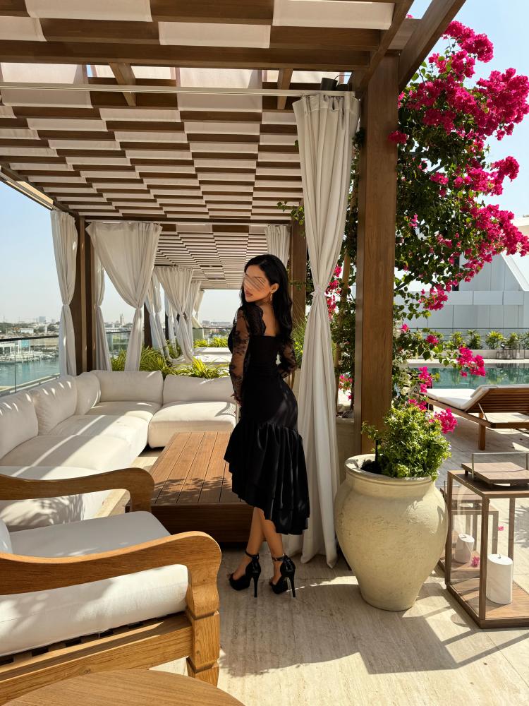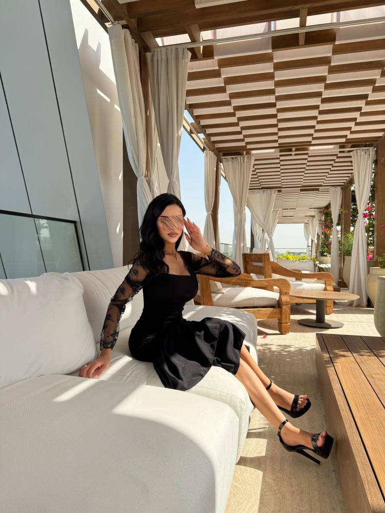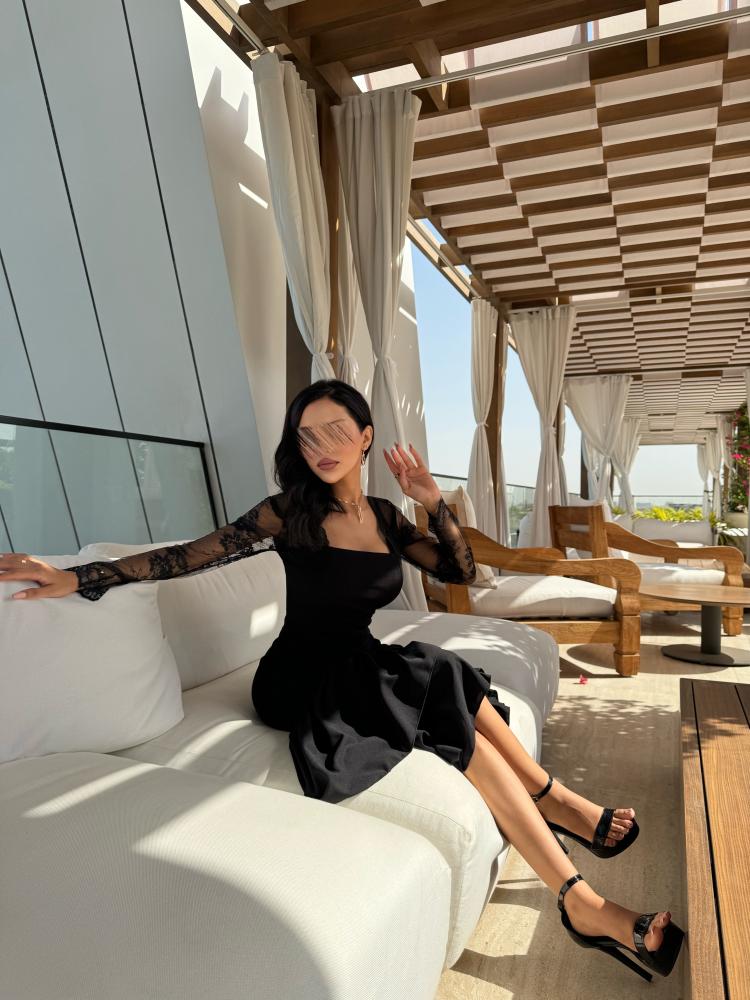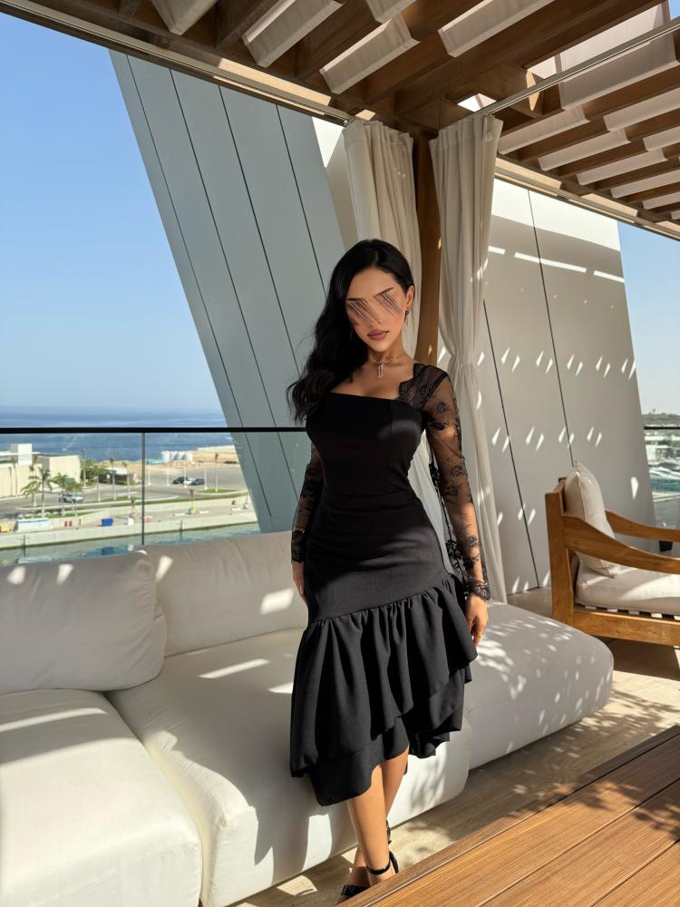 حضورك آسر مع فستان ناعم ميدي اسود صممه لكِ جميلتي متجر برستيج من الكريب باللون الأسود الفخم والفاخر مع قصة صدر مربعة وأكمام شفافة من قماش الدانتيل الأسود، وتميزي جميلتي مع التنورة المكشكشة متعددة الطبقات، لا تنتظري طويلًا اطلبيه الآن.