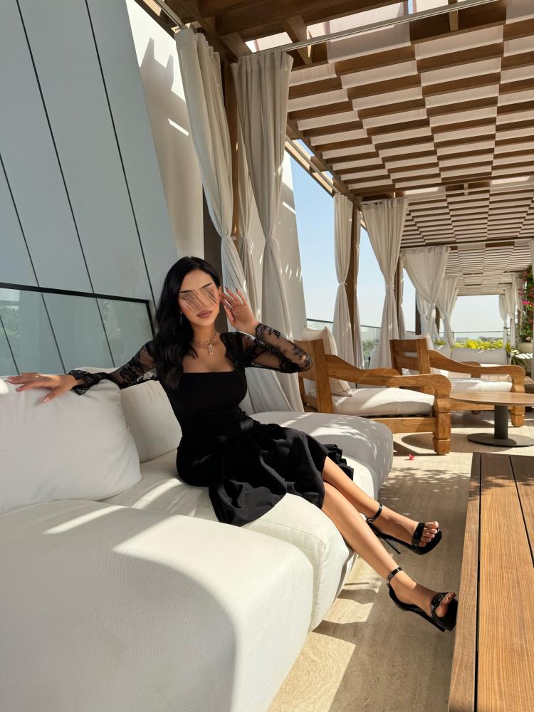 - تجرئي مع فستان ناعم بأكمام طويلة المميز بقصته الجريئة باللون الأسود.
